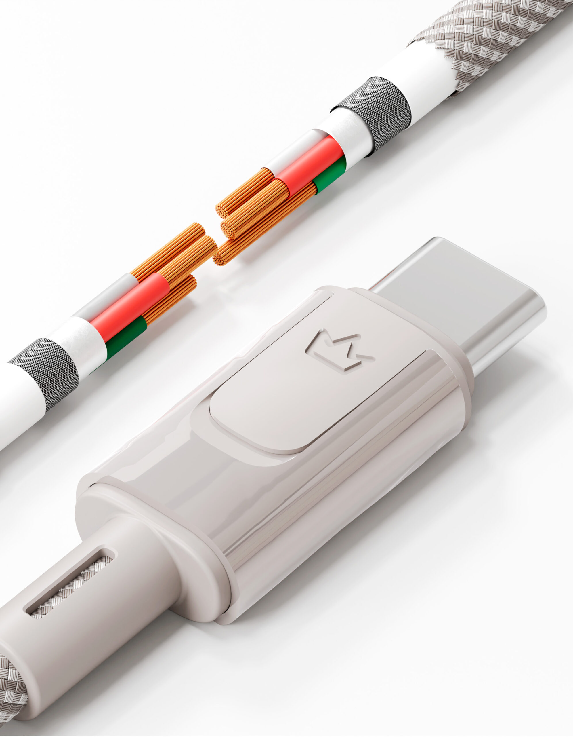 Durable nylon-braided cable with zinc alloy connectors. Supports Power Delivery fast charging up to 100W (20V/5A) and data transfer up to 480 Mbps. Bend-resistant and wear-resistant. Compatible with all USB-C devices, including laptops, smartphones, and tablets. Length: 120 cm. Includes a convenient eco-leather storage strap.